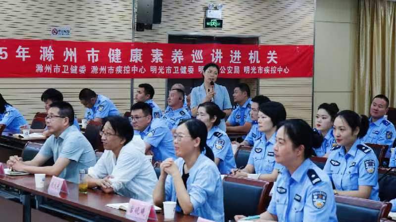 2025年10-11日,滁州市健康素养巡讲走进明光。此次活动由滁州市卫健委、市疾控中心、明光市卫健委、疾控中心、明光市公安局、明光街道交通路社区联合组织开展,活动特邀了三位省级健康素养巡讲专家进行宣讲。滁州市疾控中心健教科科长刘大庆、明光市卫健委副主任、疾控局长宫晓曦、疾控中心主任朱子刚参加了活动开幕式。