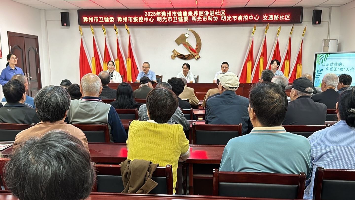 10月11日,在明光市交通路社区,明光市两位省级健康素养巡讲专家韩利、张明勇用通俗易懂的语言向交通路社区居民讲解了结核病防治知识和心血管疾病的预防知识,倡导居民关注自身健康,养成良好的生活方式和卫生习惯。