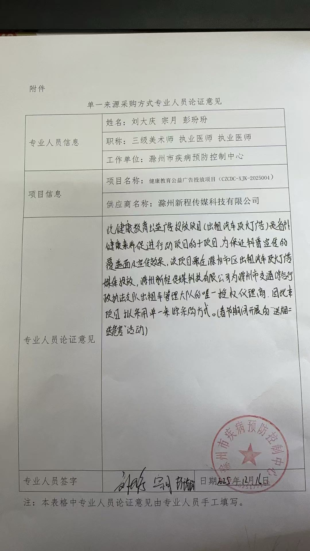 滁州市疾控中心出租汽车顶灯投放健康教育公益广告单一来源采购方式公示