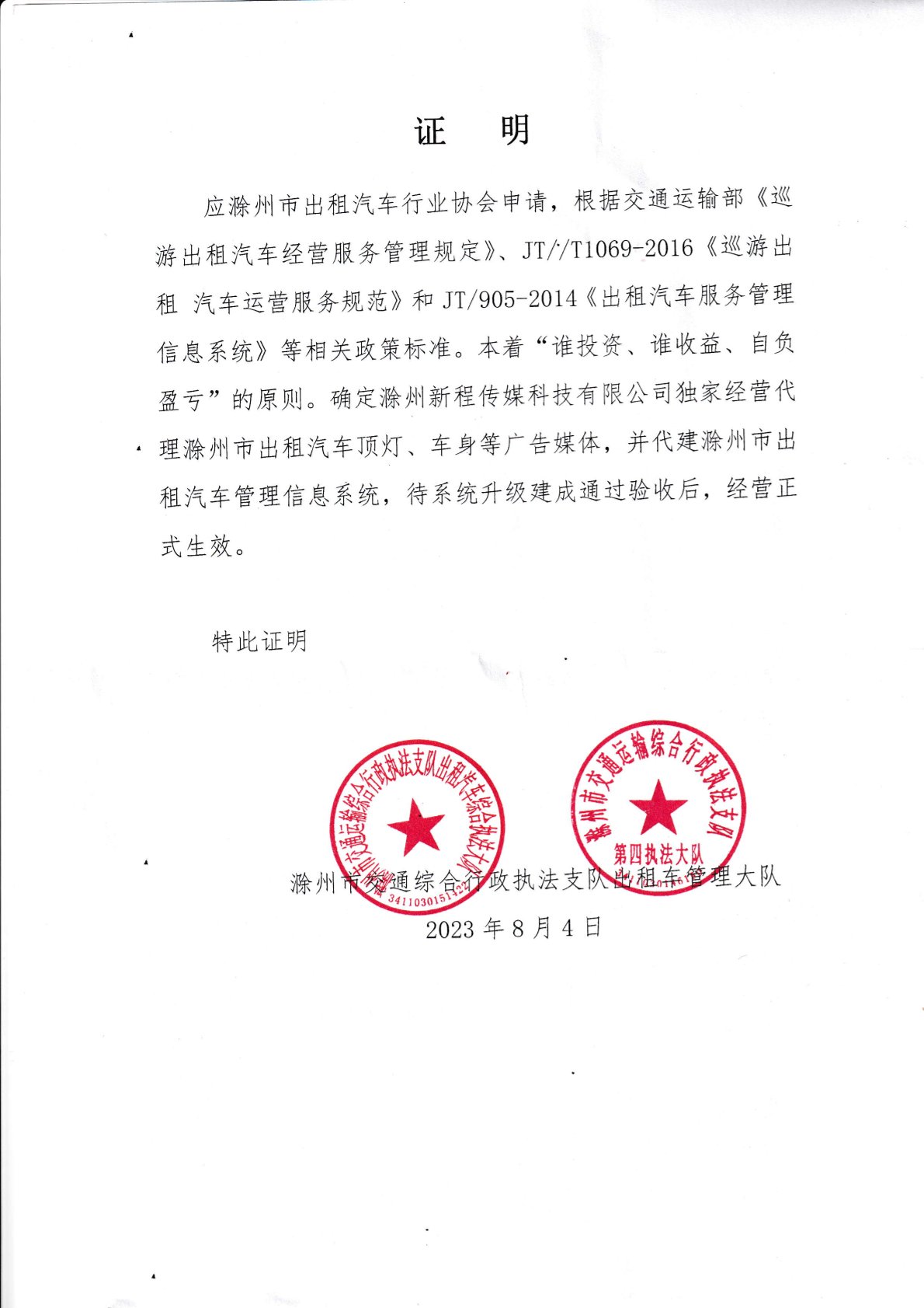 本中心的健康教育公益广告项目是省补项目健康素养促进行动项目的子项目,为保证科普宣传的覆盖面及宣传效果,该项目需在滁州市区出租汽车顶灯广告媒体投放,滁州新程传媒科技有限公司为滁州市交通综合行政执法支队出租车管理大队的唯一授权代理商,因此本项目拟采用单一来源采购方式。